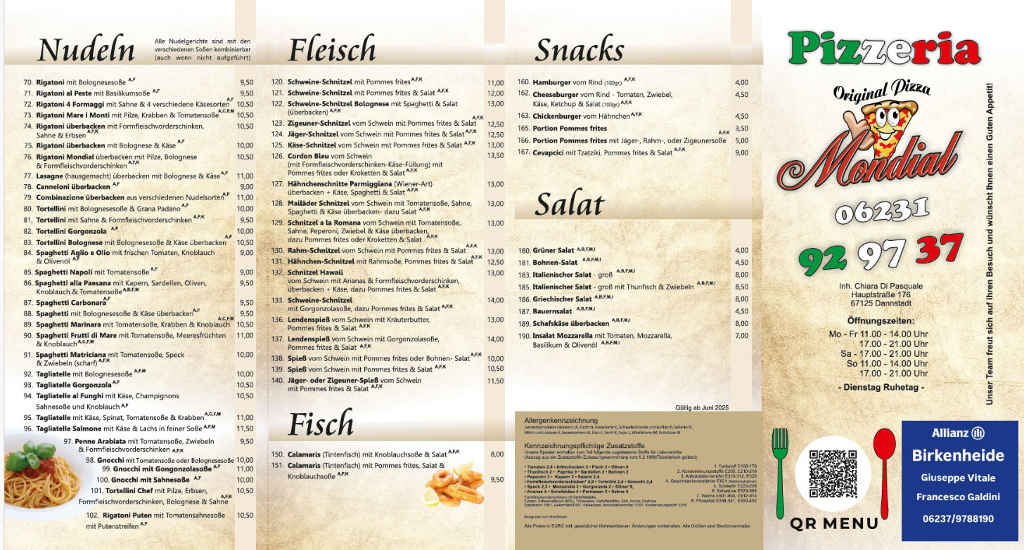 Seit vielen Jahren steht unser Familienbetrieb Pizza Mondial in Dannstadt für echten Geschmack, frischeste Zutaten und herzliche Gastfreundschaft. Mit Leidenschaft bieten wir dir die besten Pizzen, hausgemachte Pasta und köstliche Snacks – alles in bester Mondial-Qualität. Bei uns wird jedes Gericht mit viel Liebe und Sorgfalt zubereitet, damit du den vollen Genuss erleben kannst.